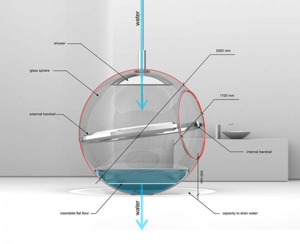Bồn tắm hình quả địa cầu trong suốt không chỉ đáp ứng tính thẩm mỹ mà còn nhiều tiện ích.