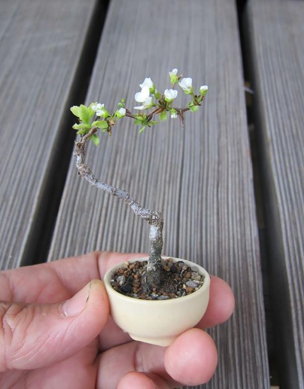 Chậu bonsai bé xíu trong lòng bàn tay.