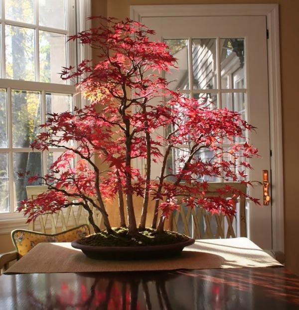 Bonsai mô phỏng rừng cây lá đỏ vào thu.