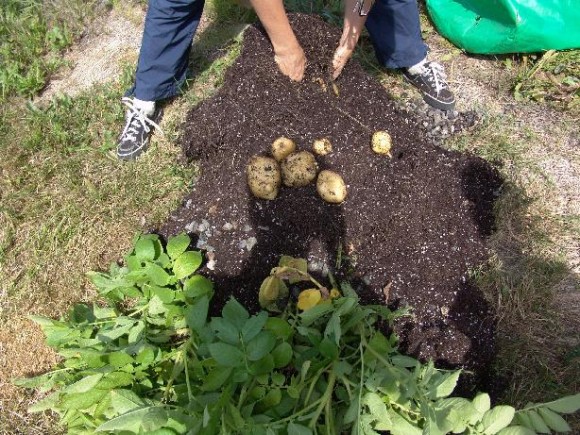 Cây khoai tây lúc ra hoa báo hiệu lúc bạn có thể thu hoạch phần củ dưới đất. Để khoai tây được ngon và dẻo hơn thì ngưng tưới nước 2-3 tuần trước khi thu hoạch.