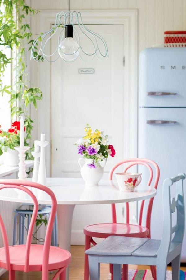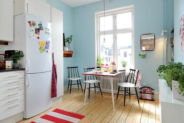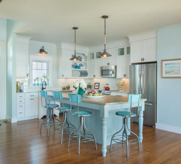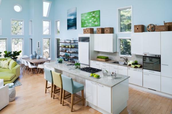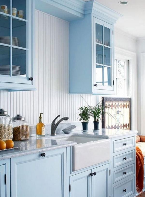 Làm dịu cảm giác nóng bức từ lửa khỏi phòng bếp với sắc xanh dịu mát sẽ không phải là một ý tưởng tồi. Những mảnh tường xanh dương hay những chiếc tủ bếp cùng màu sẽ giúp bạn biến điều đó thành hiện thực. Dành những giây phút thưởng thức bữa ăn tuyệt vời bên những bộ bàn ghế xanh dương sẽ khiến bạn thêm ngon miệng hơn.