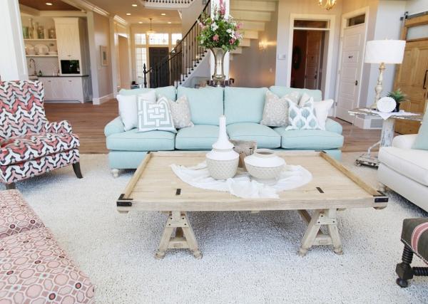 Nói đến mức độ đa dạng, phong phú cho những ý tưởng trang trí nhà với gam màu của năm không thể nào thiếu vắng đi không gian phòng khách. Một bộ sofa với sắc xanh nhẹ nhàng đủ khiến không gian căn phòng trở nên tươi sáng. Là một cặp đôi ăn ý với hồng thạch anh, vậy nên bạn đừng bỏ quên sắc hồng quyến rũ này, để từng mẫu thiết kế không chỉ dừng lại ở mức đẹp mắt.