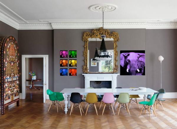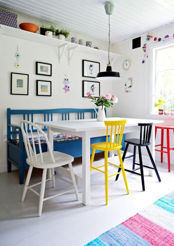Ngược lại, những chiếc ghế với màu sắc đa dạng này lại cực hợp với phòng ăn rực rỡ và không khí vui tươi.