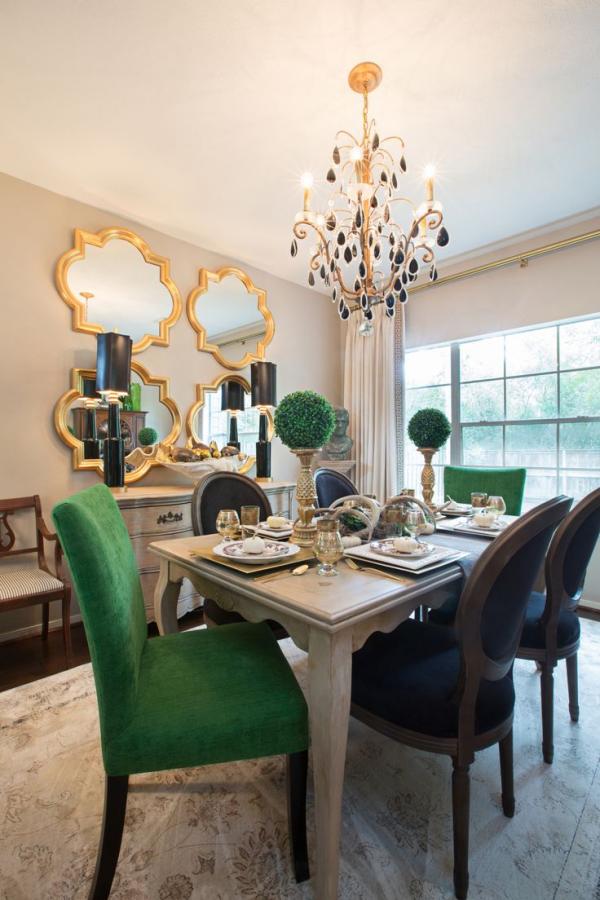 Khi muốn tìm một điểm nhấn vào ghế ăn, bạn có thể chọn những thiết kế giống nhau nhưng với màu sắc khác, hoặc cùng màu nhưng độc đáo về hình dạng. Bạn cũng có thể nghĩ đến những chiếc ghế bọc khác lạ. Có rất nhiều gợi ý để tìm ra một điểm nhấn hoàn hảo cho căn phòng của gia đình.